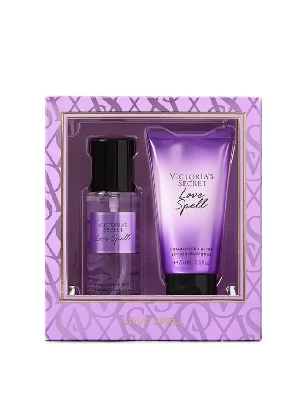 Подарочный набор Love Spell Victoria’s Secret - состоит из миниатюр парфюмированного лосьона и легкого спрея для тела,обьемом 75мл каждый. Теперь соблазнительный фруктово-цветочный аромат, будет сопровождать Вас все время. Подарочный набор упакован в новую, красивую упаковку.